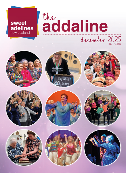 The newsletter for Sweet Adelines New Zealand is the Addaline. Click on the image to see our December 2025 edition.